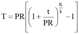 T = Minimum insulation thickness for material with conductivity K, inches. PR = Pipe actual outside radius, inches.